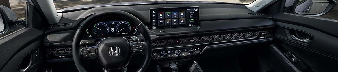 Under the hood, the 2024 Accord offers a choice of two powerful engines. The standard 1.5L turbocharged engine delivers 192 hp, delivering a seamless blend of power and efficiency. For those seeking a more eco-conscious drive without sacrificing performance, the available 204 hp hybrid powertrain is an ideal choice. This hybrid setup, with its electric motor, creates an exhilarating driving experience with instant torque while it maintains impressive fuel efficiency.
