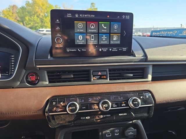 - Radio: Bose Premium Sound System -inc: 12 speakers w/subwoofer, 9" color touchscreen, Bluetooth® HandsFreeLink and streaming audio, Radio Data System (RDS), Speed-sensitive Volume Compensation (SVC), front 12-volt power outlet, wireless Apple CarPlay and Android Auto compatibility, Wi-Fi hotspot capability, Qi wireless phone charger, SMS text message function, SiriusXM (SiriusXM requires a subscription after any trial period, If you decide to continue your SiriusXM service at the end of your trial subscription, the plan you choose will automatically renew and bill at then-current rates until you call SiriusXM at 1-866-635-2349 to cancel, See our customer agreement for complete terms at www.siriusxm.com, Fees and programming subject to change, Available in the 48 contiguous United States and D.C, SiriusXM and all related marks and logos are trademarks of SiriusXM Radio Inc.), HD Radio, 2.5-amp USB type-A smartphone/audio interface port in front console, 3.0-amp USB type-C charging port in front console, Honda Satellite-Linked Navigation System w/voice recognition and Honda Real-Time Traffic (The Honda Satellite-Linked Navigation System functions in the United States (not including territories, except Puerto Rico) and Canada, Honda HD Digital Traffic service is only available in the United States, except Alaska, Please see your Honda dealer for details.), HondaLink subscription services ( complimentary trials of security for 1 year and a remote/concierge trial for 3 months, Enrollment is required to access the remote/concierge trial and to access certain features of security, At the end of each trial period, purchase of a subscription is required to continue the respective services.), multi-zone audio and CabinTalk in-car PA system