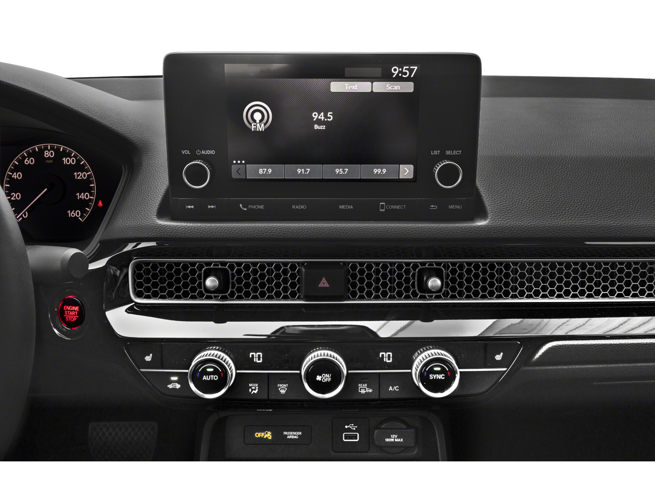 - Radio: 180-Watt Audio System -inc: 8 speakers, 7" color touchscreen, Bluetooth® HandsFreeLink and streaming audio, HondaLink, SMS text message function (Your wireless carrier's rate plans apply, State or local laws may limit use of texting feature.), Speed-Sensitive Volume Compensation (SVC), Radio Data System (RDS), Apple CarPlay and Android Auto compatibility and 2.5-amp USB smartphone/audio interface port in front console
